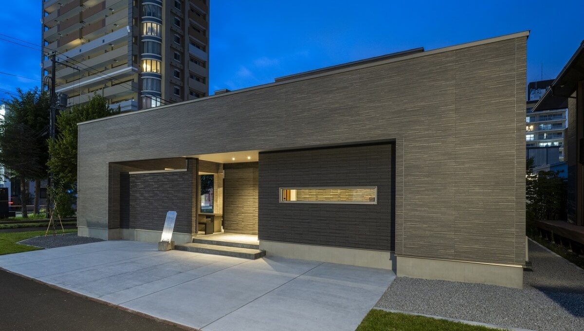 【洗練された窓のない外観】
