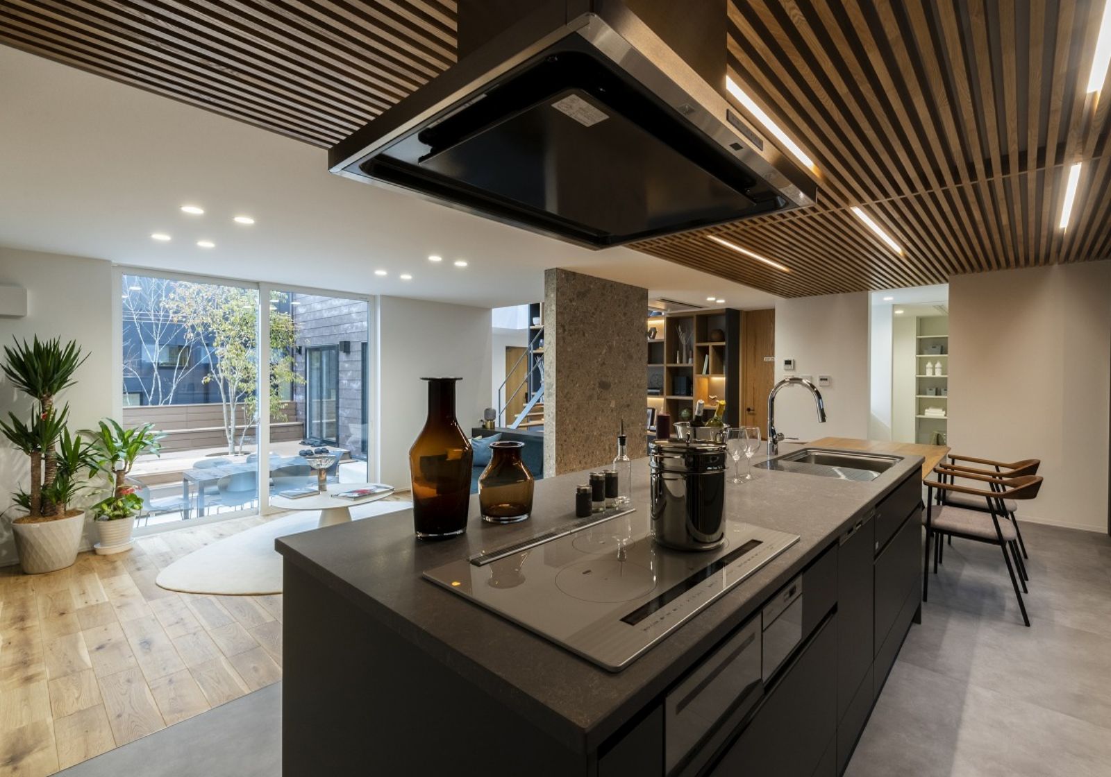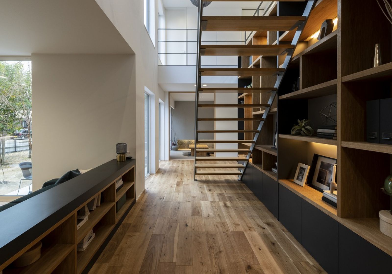 一見、窓の少ないスタイリッシュな外観。しかし、一歩足を踏み入れると、そこには明るく開放感あふれる空間が広がります。