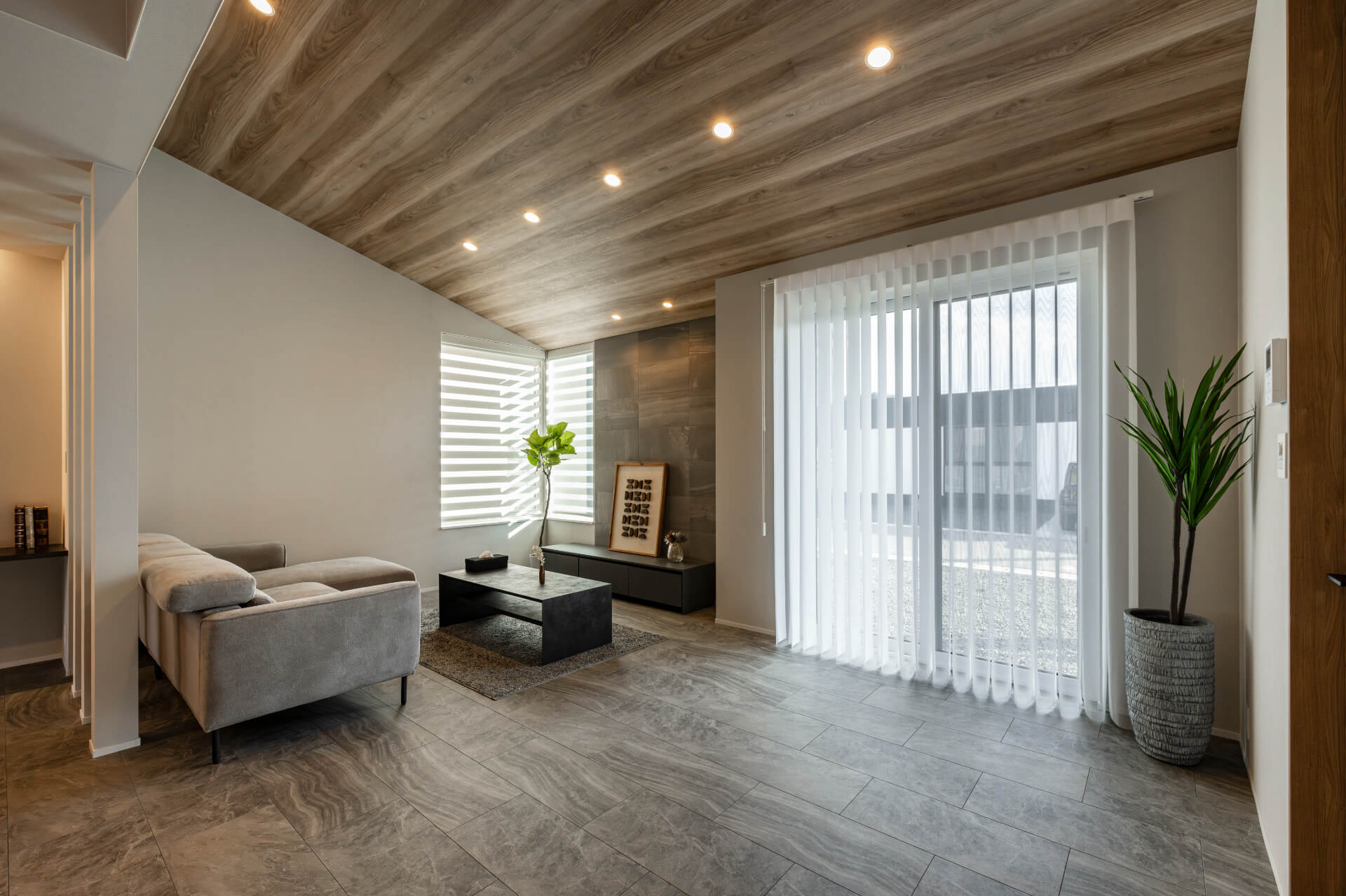 窓がないのに明るい!吹き上げ勾配天井のあるLDK
