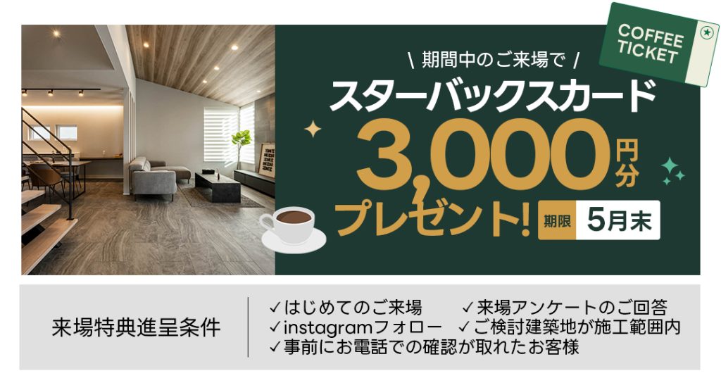 皆様の家づくりを応援する気持ちを込めて、期間限定の特別なキャンペーンをご用意いたしました。