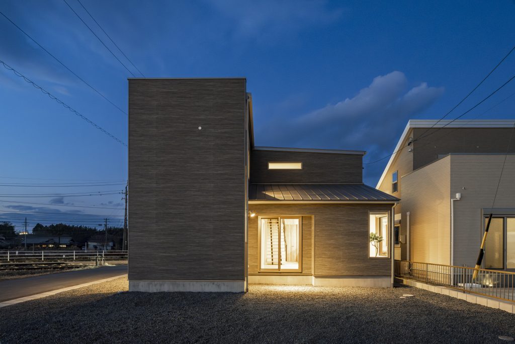 照明やシルエットにこだわったモデルハウス。その特徴が光る『夜の景観』をぜひご覧くださいませ。