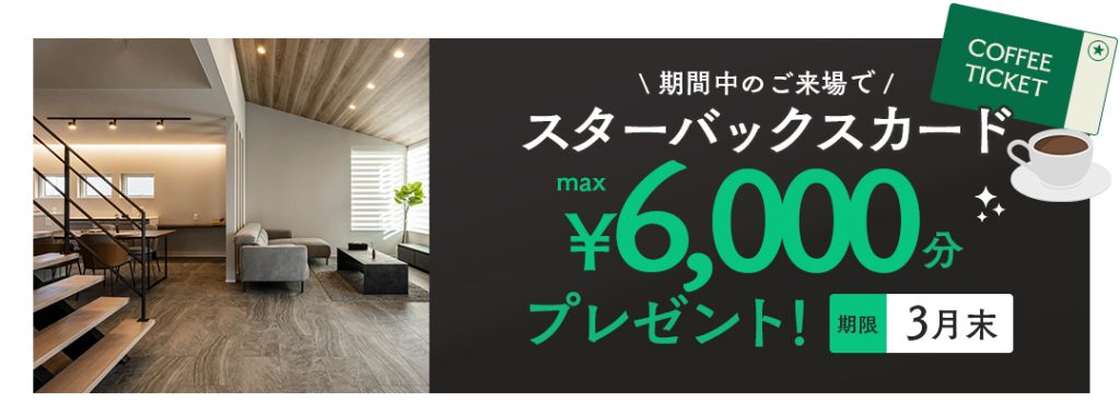 期間中最大6,000円分のスターバックスカードをプレゼントしております。