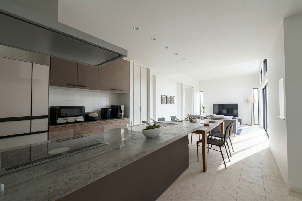 コンセプト:「無駄のない美しさと、暮らしやすさの融合」を体現した一棟。